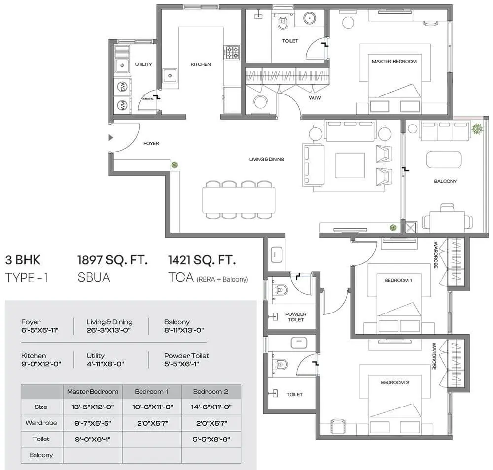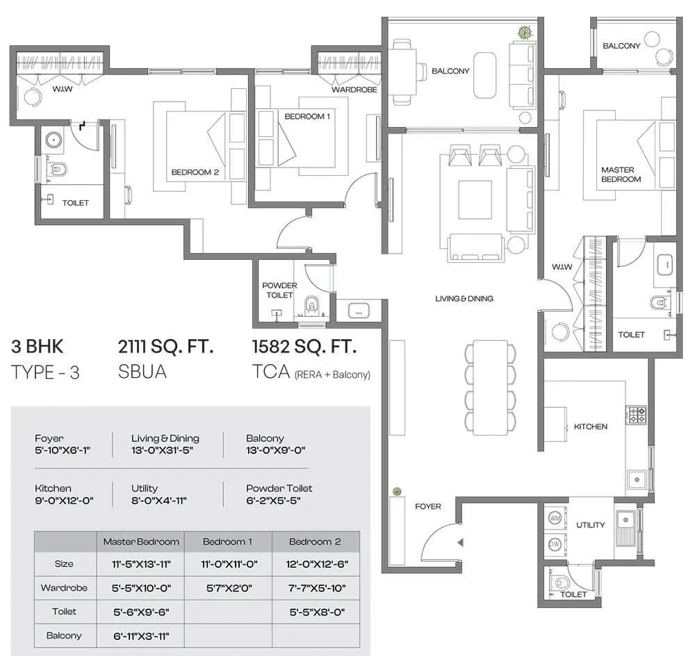 Assetz Meru & Meadow 3 BHK Floor Plan 3 BHK