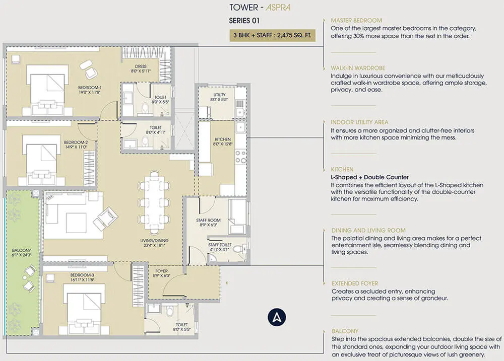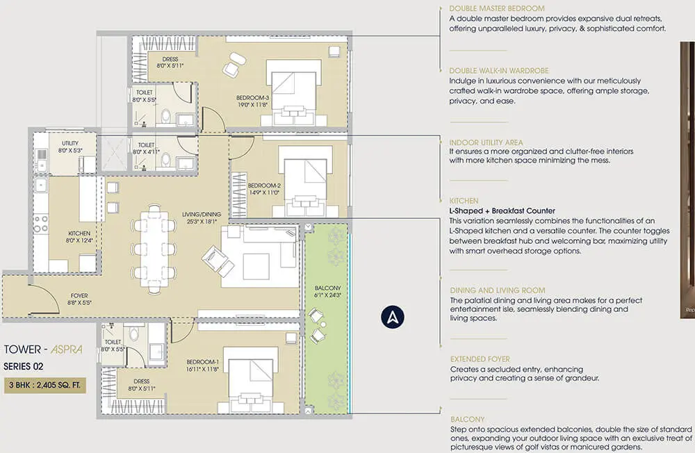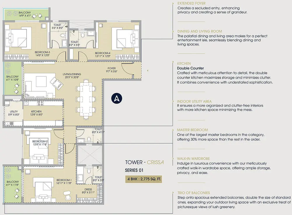 Century Regalia brings together timeless design and modern functionality to create homes that inspire. Each residence is thoughtfully planned with large balconies, premium finishes, and open layouts that ensure maximum natural light and ventilation. Every detail reflects sophistication, from the imported fittings to the intelligent space planning and serene views of lush landscapes.