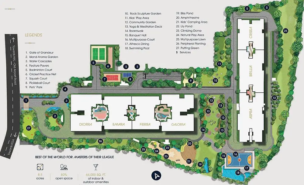The project is surrounded by beautiful landscaped gardens, community greens, and panoramic views of the KGA Golf Course, offering a tranquil yet vibrant environment. Century Regalia’s contemporary architecture blends seamlessly with the natural beauty of its surroundings, creating a sanctuary in the heart of Bangalore.