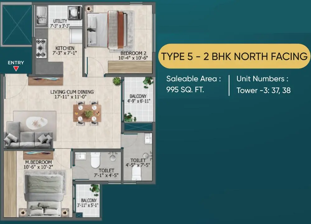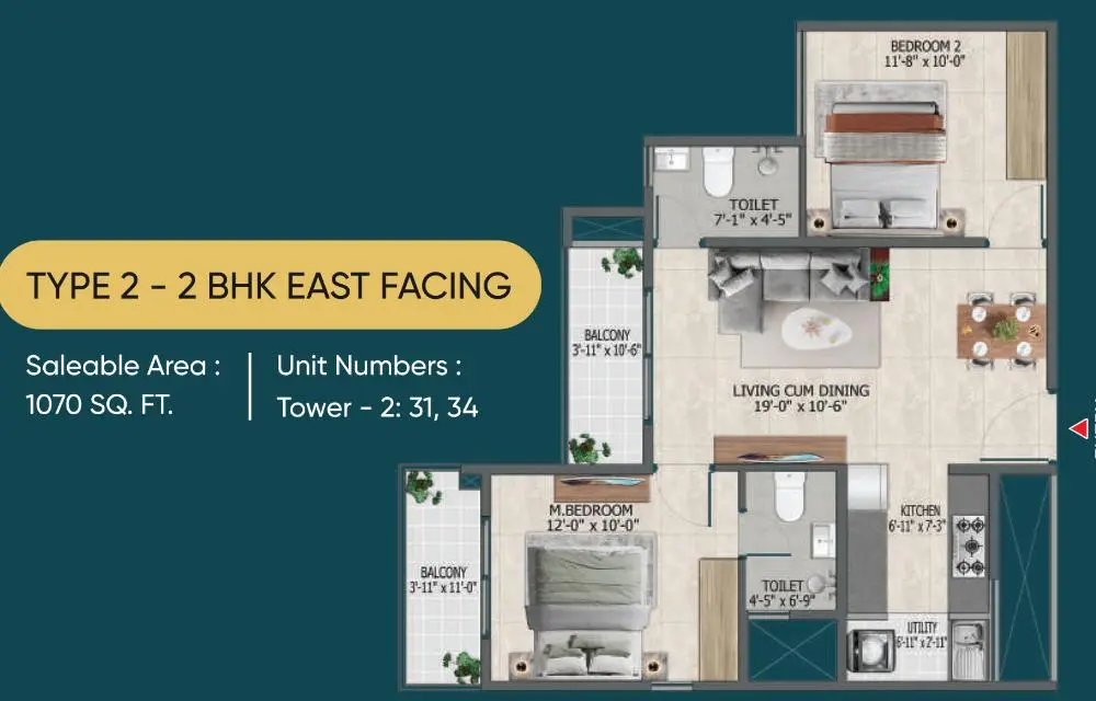 Sowparnika Rhythm Of Rain 2 BHK Floor Plan 2 BHK